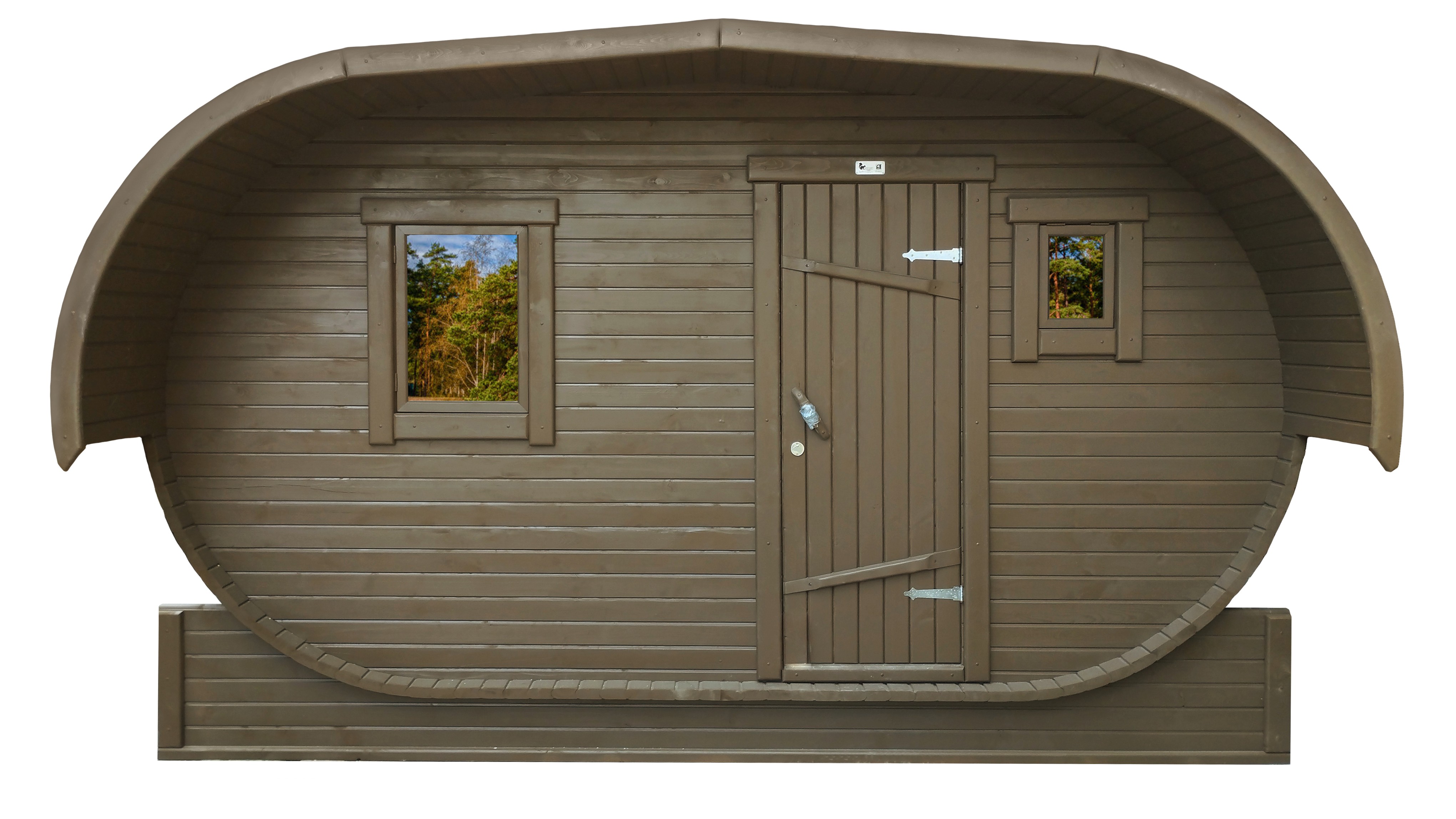Симбиоз круглой и квадратной бани-бочки. Разработано с учётом эргономики, в ней так же просторно, как и в квадро-бочке, но при этом полукруглая крыша не дает задерживаться снегу и влаге на кровле. А еще такая баня безусловно красивая, мобильная и доступная каждому!