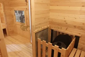 При заказе бокового входа пол в бане становится ровным.