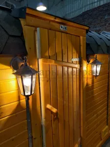 Изысканный светильник под старину сделает вашу баню особенной, добавив красоты и света снаружи.