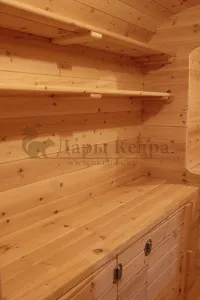 Для удобства размещения бытовых мелочей обязательно добавьте небольшие шкафчики с дверцами (2 шт) - 15 000 руб и верхние открытые полки (2 шт) - 5 000 руб. Всё необходимое в бане или доме должно быть всегда под рукой!