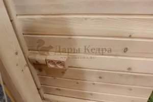 Козырек из кедра - это защита входа в баню и всего фасада от лишней влаги, что, конечно, лучшим образом скажется на красоте и долговечности дерева.