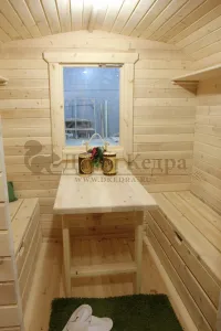 Столик в раздевалке будет удобен при длительном пребывании в бане.