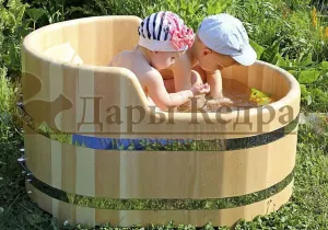 Детская купель из кедра, будет радовать вас и вашего малыша долгое время. К тому же, благородное натуральное дерево будет одинаково красиво смотреться, как на улице, так и в помещении. Купель можно сделать, как с обручами, так и без них, по вашему желанию. Цена будет неизменной.